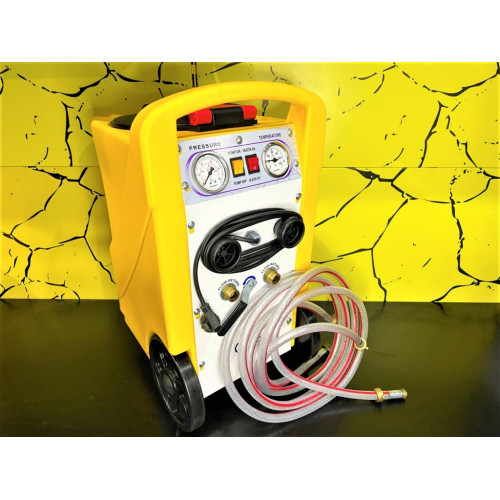 Надійна портативна потужна електрична промивна установка для очищення в корпусі із жорсткого пластику. Невелика маса всього 23 кг. Міцний вогнестійкий 35-літровий резервуар із УФ-стабілізованого ПЕ. Має великий заливний отвір для легкого очищення та заповнення. Особливо актуально при використанні реагентів для промивання у вигляді порошку. Практична кришка резервуару. 2 великі колеса для простоти використання у складних умовах роботи. Практична ручка для легкого транспортування. Фільтр, яким оснащений пластиковий резервуар, дозволяє легко утримувати мул, органіку, продукти розпаду системи, спайки, припій та інші забруднення, що залишилися в рідині, що циркулює.