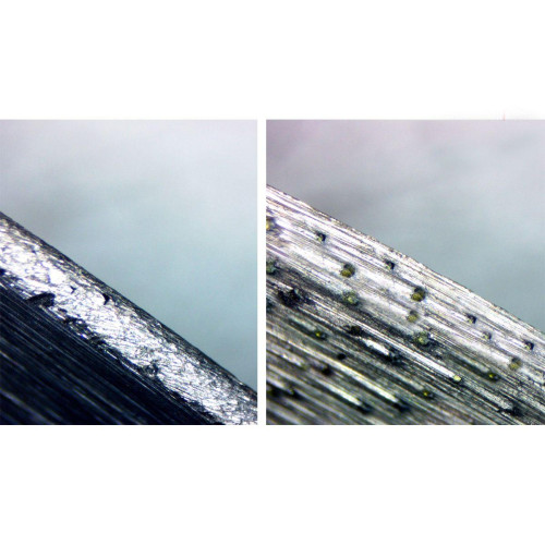 Брусок MECHANIC ABRASIVE відмінно підходить для заточки алмазних дисків. У ньому правильно поєднується розмір, міцність абразивних зерен, спеціально підібраних для вскриття алмазного інструменту. Для цього необхідно виконати кілька поздовжніх різів алмазоносним шаром, який затупився. Диском для КШМ виконуємо різи глибиною до 5 мм. Дисками для плиткорізів глибиною до 10 мм. Диски для кераміки рекомендується розкривати по світлій стороні бруска, диски для граніту, мармуру - по темній. Чим сильніше затуплений диск, тим більше різів необхідно виконати. В середньому це 10-15 різів, і ваш диск знову гострий.