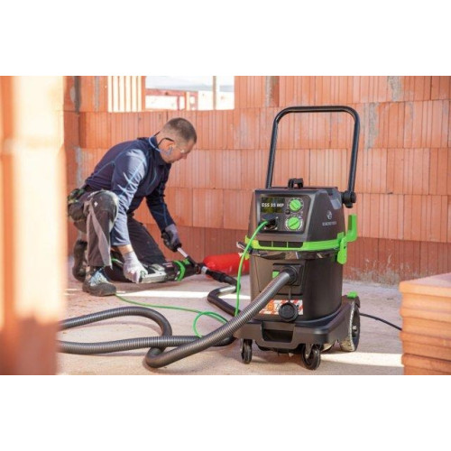 Промисловий пилосос Eibenstock ESS 35 MP - пилосос для сухого та вологого прибирання. Оснащений електричним двигуном потужністю 1,2 кВт, напруга 220 В. Об'єм контейнера для пилу складає 35 л. Підходить для видалення пилу на будівельних майданчиках, для збирання транспортних засобів, житлових та комерційних приміщень, для шкідливого пилу з граничними значеннями > 0,1 мг/м³ (клас M), шламу.
