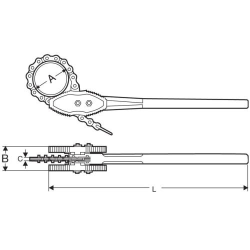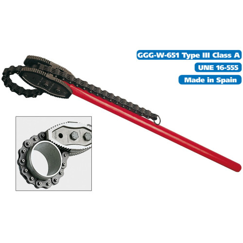 - 103 Двосторонній ланцюговий ключ для труб D 8", L 1278 мм, довжина ланцюга 1010,6 мм.
