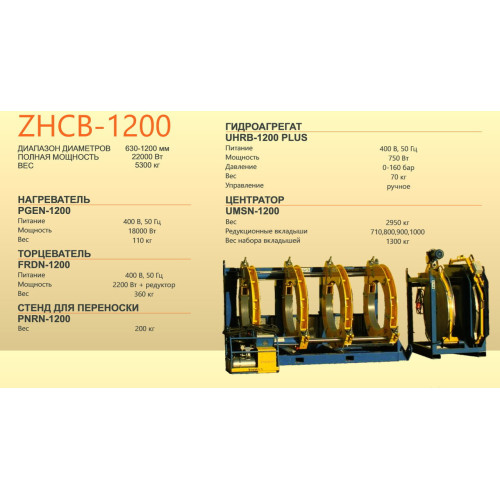 Апарат ZHCB-1200 (з ручним керуванням без реєстрації параметрів зварювання, тобто без протоколювання) – призначений для зварювання встик труб з (PE, PP, PB, PVDF )* діаметром від Ø 630-1200 мм.